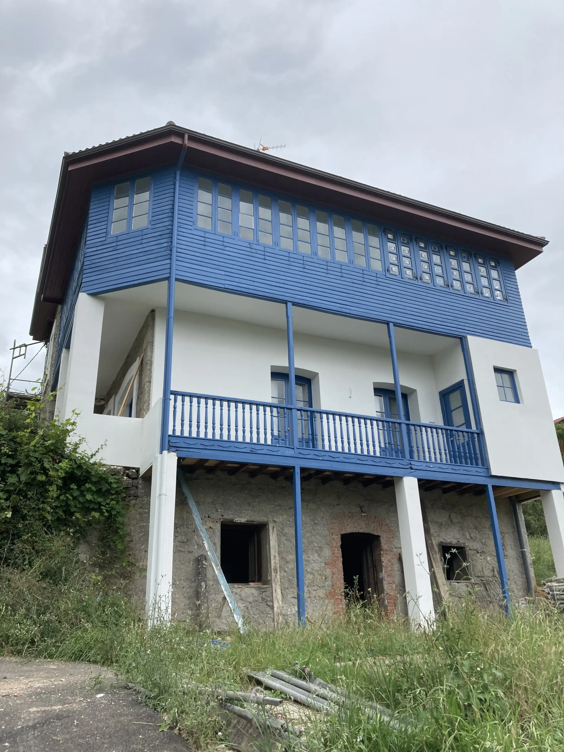 Para las fachadas del perímetro de la vivienda en las plantas baja y primera, incluyendo las paredes de la galería, se opta por un sistema de aislamiento térmico exterior (SATE), que consistirá en colocar un sistema de aislamiento térmico exterior constituido a base de placas aislantes de poliestireno (EPS), de 8cm. de espesor, previo saneado de las mismas. Estos paneles serán fijados al paramento existente con espigas y mortero especial de agarre, y llevarán una capa externa de mortero con armadura más el acabado definitivo, que en este caso será de color blanco para mantener la luminosidad en estos espacios.